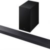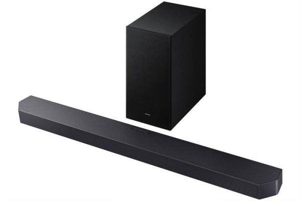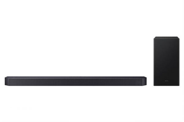 Bộ loa thanh Samsung HW-Q600F/XV 380W sở hữu vẻ ngoài tối giản nhưng không kém phần sang trọng với tông màu đen chủ đạo. Thiết kế nhỏ gọn của loa thanh và loa siêu trầm giúp bạn dễ dàng bố trí ở nhiều vị trí khác nhau trong phòng, từ kệ TV đến treo tường mà không chiếm quá nhiều diện tích.