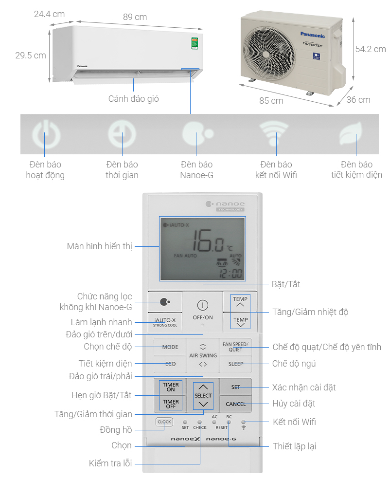 -Trang bị Nanoe-G hỗ trợ lọc bụi mịn PM 2.5, mang lại bầu không khí trong lành.