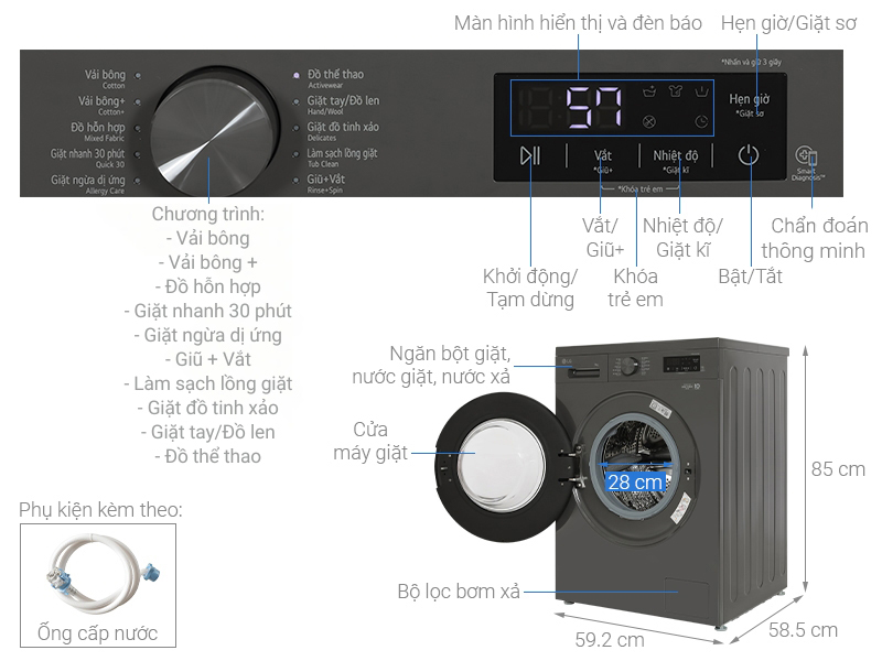 – Chẩn đoán lỗi Smart Diagnosis: đây là một chức năng thông minh, giúp người dùng chủ động phát hiện lỗi máy giặt đang mắc phải, từ đó khắc phục sớm nhất để không ảnh hưởng đến thời gian giặt giũ.
