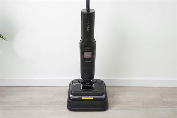 Máy hút bụi lau nhà Roborock F25 Ultra mang phong cách hiện đại với gam màu đen trung tính, tích hợp ba chức năng: hút bụi, lau sàn và tự vệ sinh.