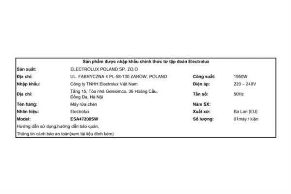 Máy rửa bát Electrolux ESA47200SW là sự kết hợp hoàn hảo giữa thiết kế sang trọng, tính năng thông minh và hiệu suất hoạt động mạnh mẽ. Với khả năng rửa được 13 bộ chén đĩa, đa dạng chương trình, sấy khô hiệu quả và diệt khuẩn vượt trội, đây chắc chắn là trợ thủ đắc lực giúp bạn giải phóng thời gian và tận hưởng cuộc sống tiện nghi hơn mỗi ngày.
