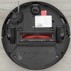 Mặt dưới của robot bao gồm chổi chính bằng cao su ở giữa để gom bụi và mảnh vụn, chổi quét cạnh để xử lý bụi dọc tường, chống rối tối ưu cùng bánh xe cao su đàn hồi có khả năng leo bậc thấp. Ngay phía sau chổi chính là khay gắn giẻ lau, dễ tháo lắp và giặt lại sau mỗi lần sử dụng. Các cảm biến chống rơi bố trí xung quanh viền đáy, đảm bảo an toàn khi di chuyển gần cầu thang hoặc khu vực chênh cao.