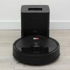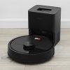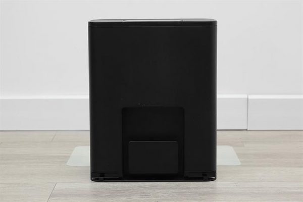 Trạm sạc đồng bộ màu đen, vừa nạp pin vừa tự động hút bụi vào khoang chứa lớn, thiết kế tối giản dễ đặt sát tường gọn gàng.