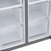 Với tổng dung tích 550 lít và dung tích sử dụng thực tế 502 lít, trong đó dung tích ngăn lạnh là 326 lít và dung tích ngăn đá là 176 lít, tủ lạnh này sẽ phù hợp cho gia đình từ 4 – 5 người. Các khay kệ làm từ kính cường lực bền chắc, dễ dàng di chuyển để chứa thực phẩm cồng kềnh như nồi hoặc khay lớn.