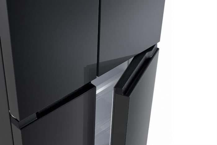 Tủ lạnh 4 cánh LG F50BG sở hữu mặt gương soi màu đen bóng giúp tạo điểm nhấn hiện đại và đẳng cấp cho gian bếp. Thiết kế Multi Door 4 cánh không chỉ thẩm mỹ mà còn tiện lợi trong việc phân chia thực phẩm, hạn chế thất thoát khí lạnh mỗi khi mở cửa.